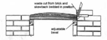 For rough arches the skewback can be established by cutting angle from brick placed squarely on the turning piece.