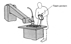 The Robot movements are controlled by inputs from a teach pendant or keypad, the