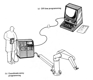 Robots are programmed using "on-line" or "off-line" methods.