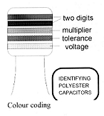 You may still come across colour coded capacitors in older equipment and the chart on the separate sheet will help in their identification.